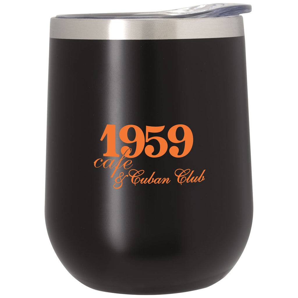 The BIC Black Wine Vacuum Tumbler - 13 oz. is. great way to carry a glass of wine around with you at any picnic, tailgate, or outdoor industry event. Featuring a double-wall, vacuum sealed stainless steel exterior, add your company's custom logo for a fun, stylish employee gift or branded giveaway item.