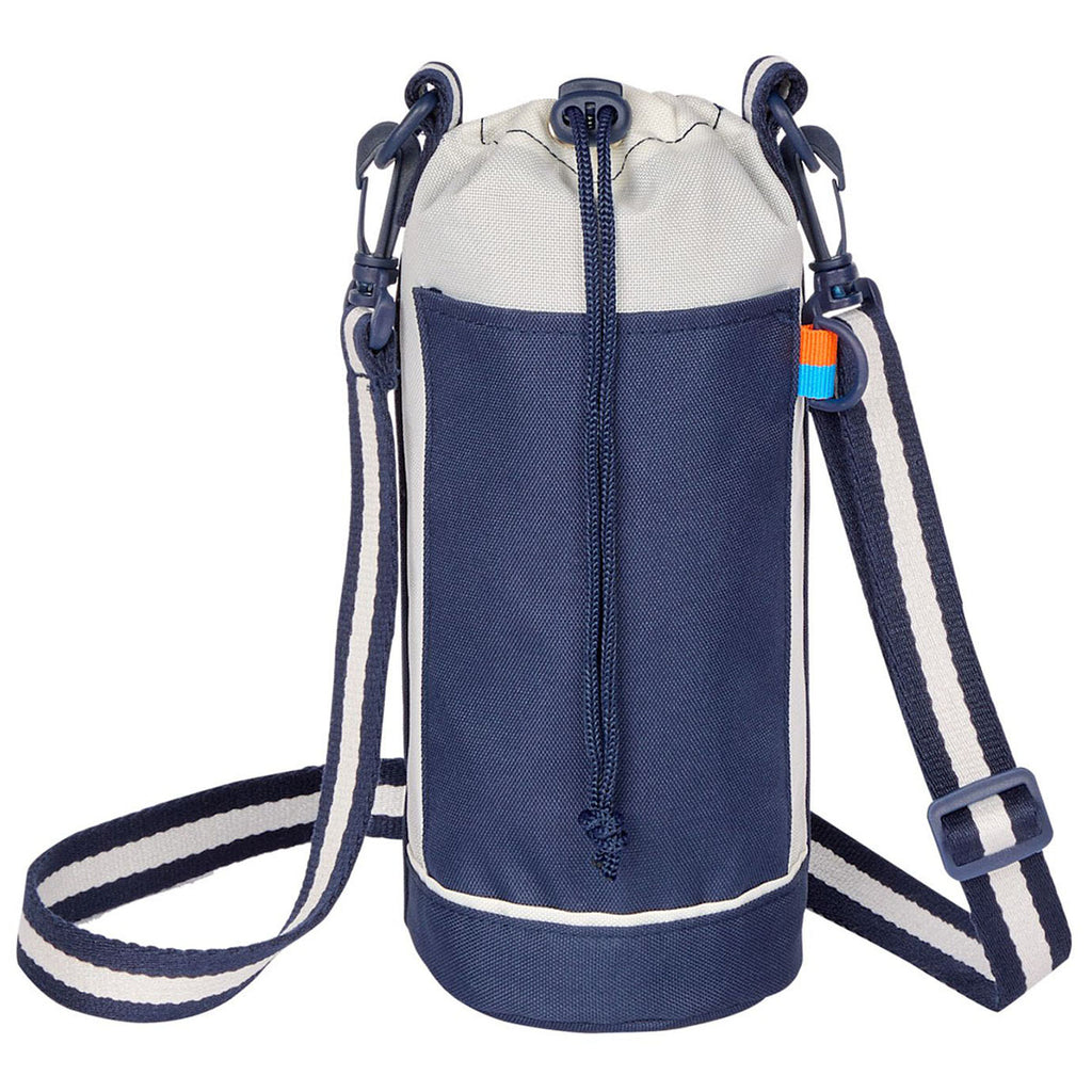 Design a custom logo for the Leed's Navy Retro Sport Recycled Bottle Sling to create a new item to promote your brand. This stylish sling is on-trend for hydration on the go. The adjustable strap allows for hands-free carrying while playing sports, traveling, hiking, or camping. The uses are endless to keep your favorite drink right at hand.The minimum order for this product is 50 pieces.