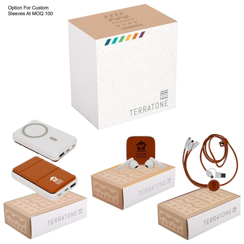 - Includes; TerraTone Wireless Earbuds and TerraTone 3-in-1 Charging Cable, and TerraTone Powerbank & Wireless Charger.