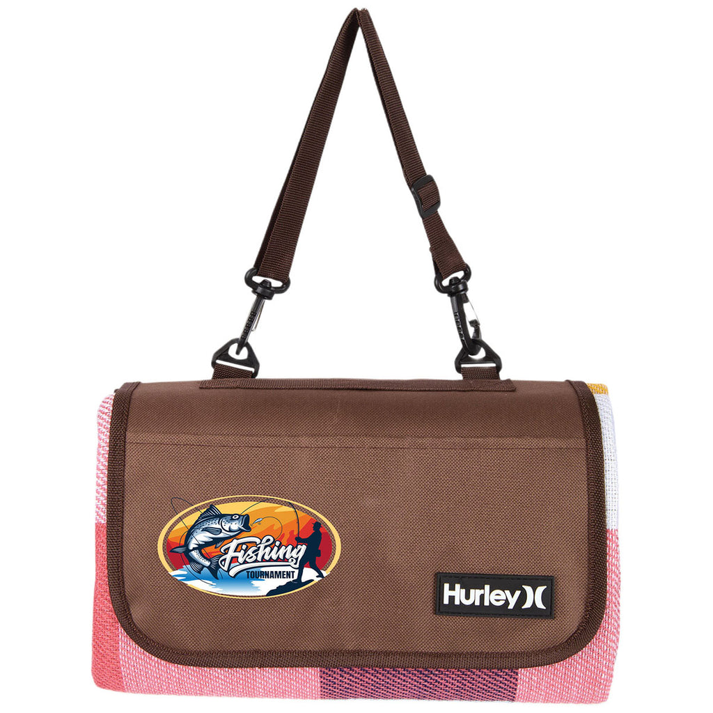 The Hurley Purple Water Resistant Outdoor Packable Mat is a compact, custom item ideal for brand promotions centered on leisure and wellness. Lightweight and easy to carry, it folds into its own zippered pouch with handles. Use it at festivals, beach events, or fitness programs where comfort and branding go hand in hand.