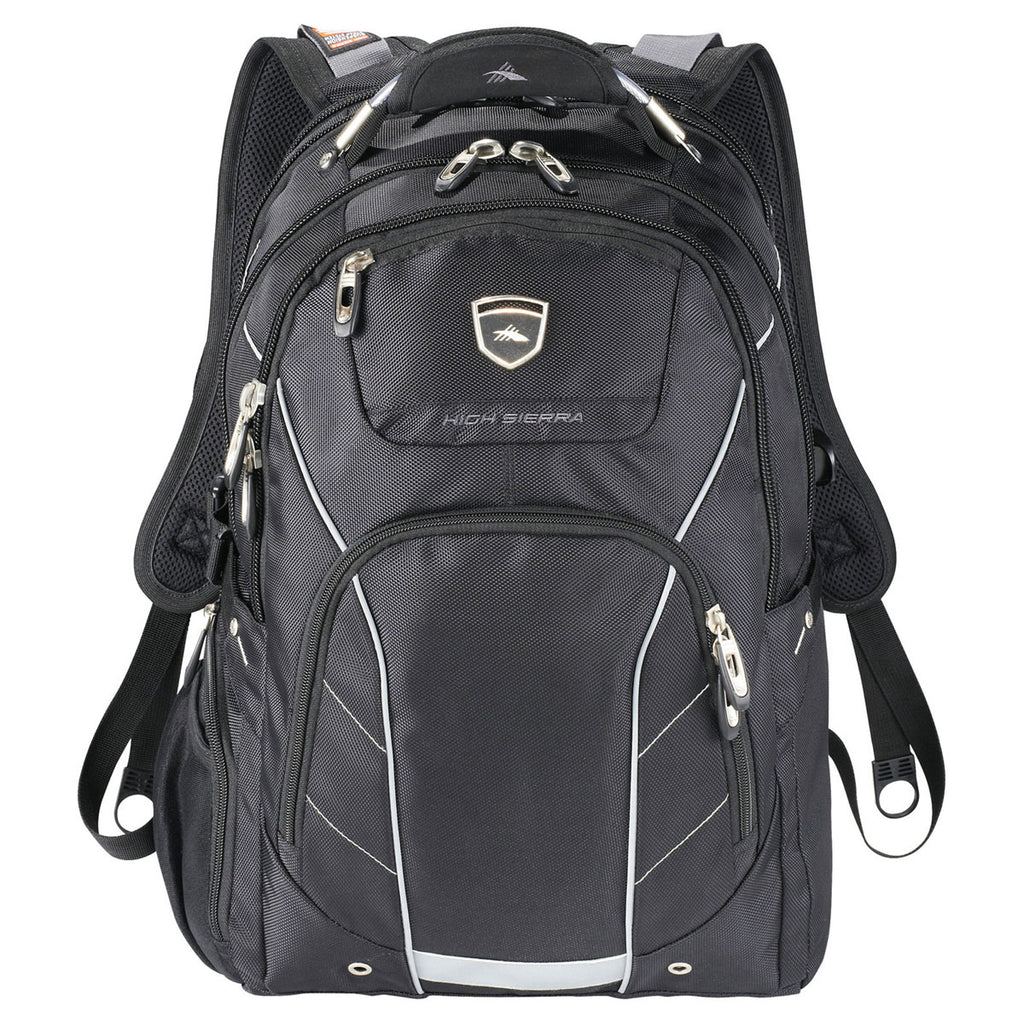 You can offer this High Sierra Black Elite Fly-By 17" Computer Backpack as part of an employee welcome package. With your added custom logo, this backpack doubles as a promotional tool. The padded sleeve offers protection for a user's computer. Several compartments are also included for keeping all the computer's peripherals intact.Highlights