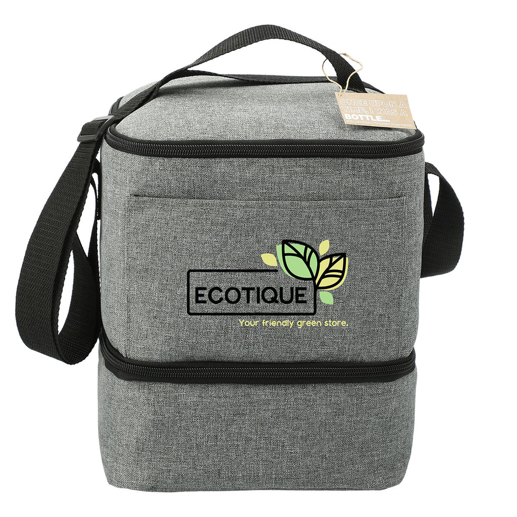 Your employees will love owning a Leed's Graphite Tundra Recycled Lunch Cooler that features your company's custom logo or design. Inside of this insulated lunch container, you'll find a PEVA lining that easily wipes clean. A zippered compartment at the bottom is designed to hold a bento box or anything else you want to keep separate.