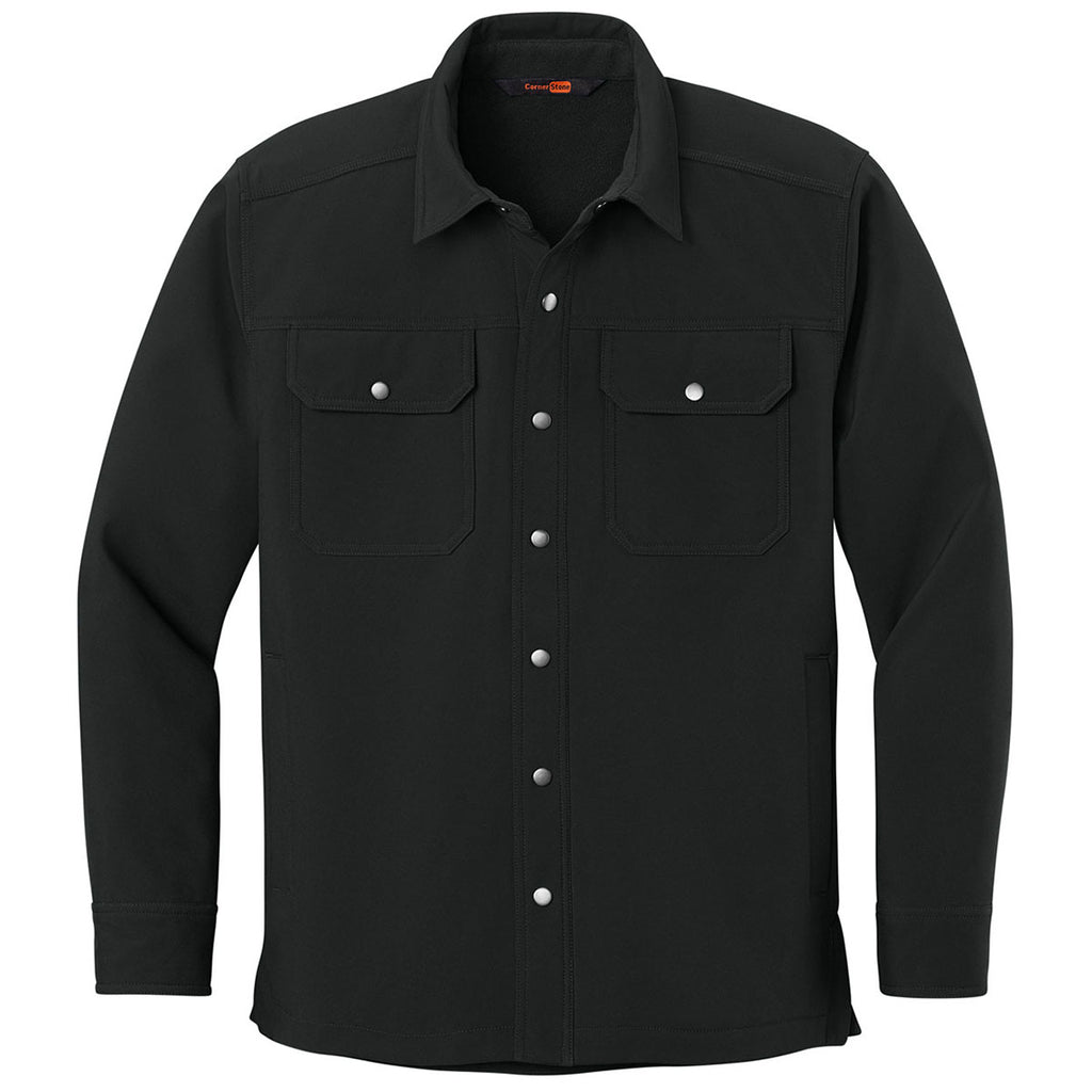 Custom embroidery gives the CornerStone Men's Black Soft Shell Shirt Jacket a polished corporate look. Designed with the toughness of a jacket and the style of a shirt, it's versatile enough for work or casual wear. Your logo becomes a professional piece that employees can wear with pride on and off the job.Highlights