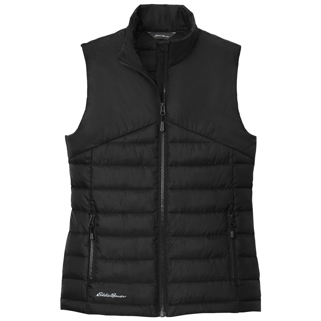 Eddie Bauer Women's Deep Black Quilted Vest with a custom logo is a fun and fashionable way to stay warm. Worn as an outer or middle layer, this vest will keep you warm without creating much added bulk. The mock neck and full zip front make this great for hiking, running, or general day-to-day errands. Place an order today.This product can only ship within the United States, Puerto Rico, Canada, and Mexico.