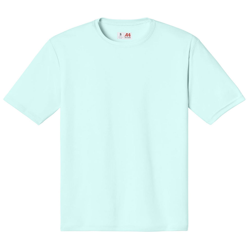 Keep cool with the A4 Men's Pastel Blue Cooling Performance Short Sleeve Tee. Built with moisture-wicking fabric, this tee is designed for workouts, sports, or active jobs. Customize it with your logo to create branded apparel that's functional and comfortable. Its lightweight design makes it a reliable choice for corporate promotions or team uniforms.Highlights