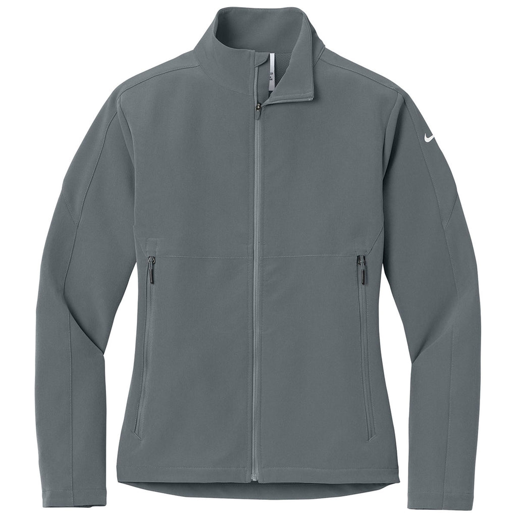 Nike Women's Dark Grey Full-Zip Soft Shell Jacket combines professional appeal with custom comfort. Lightweight and water-resistant, it provides reliable protection while maintaining a polished silhouette. Embroidered logos enhance brand visibility, making this jacket an excellent option for employee apparel, client gifts, or team wear. Stylish and practical, it supports your brand with athletic-inspired performance.This product cannot ship outside of the United States.