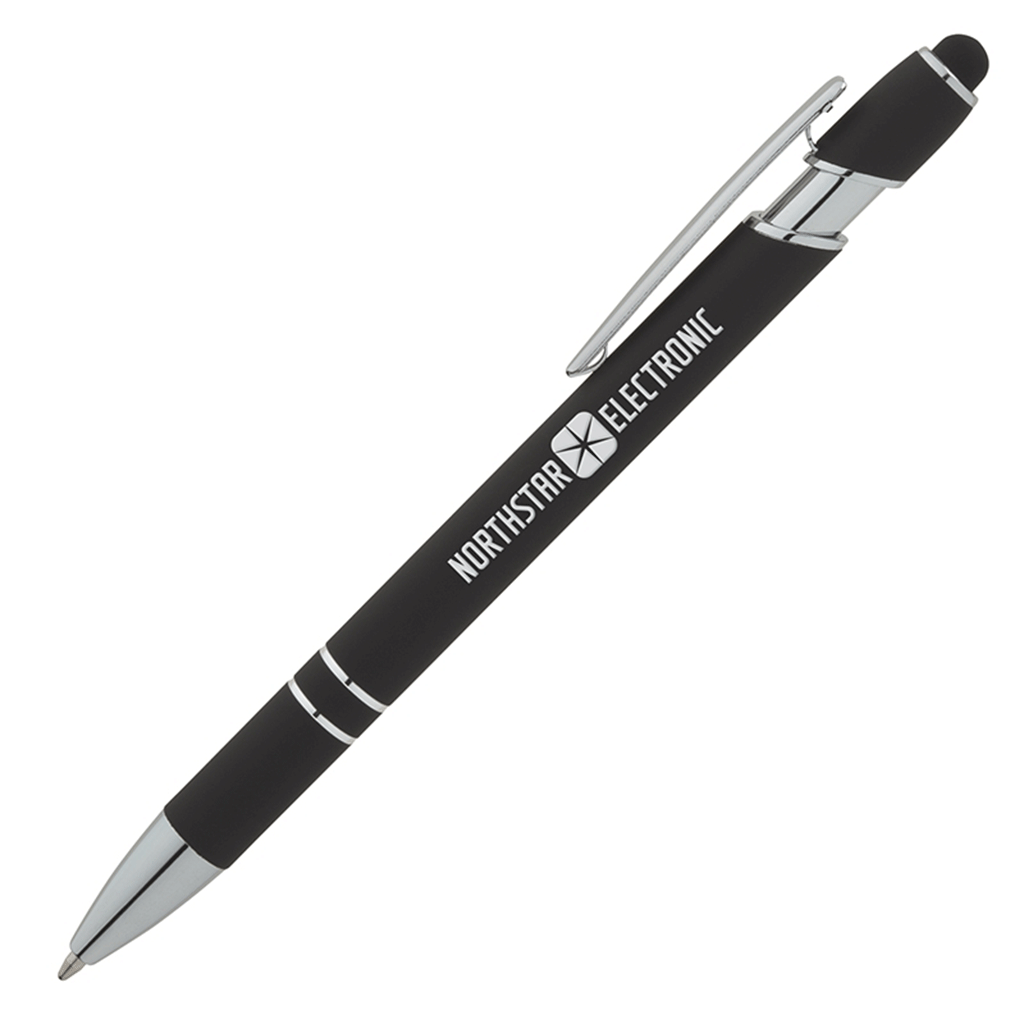 The Black Denton Soft-Touch Pen with Stylus comes with a stylus and has an elegant look and a classic design. It has a plunge-action mechanism, chrome trims, a rubberized finish and pocket clip. Perfect for business professionals in an office environment, the Denton is also compatible with touch screen devices.The minimum order for this product is 500 pieces.