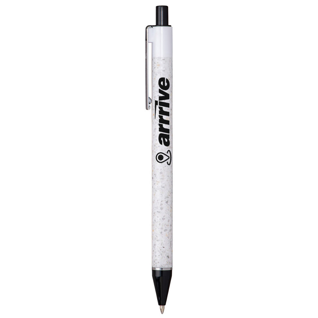 • Terrazzo-looking foil-wrapped pen with chrome accents