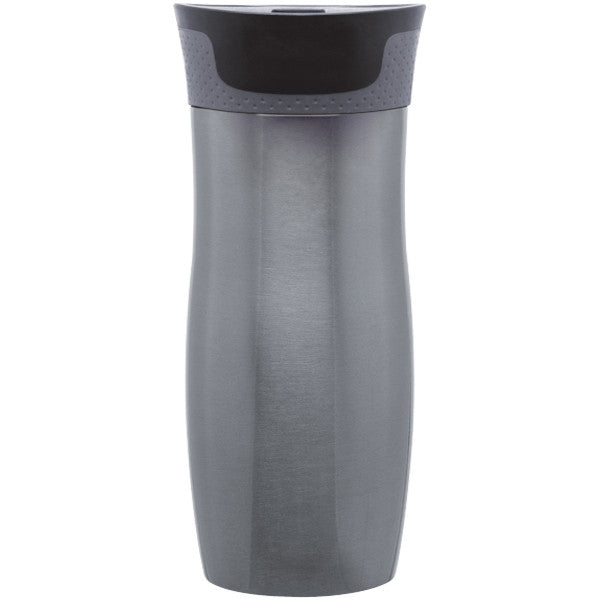 Whether you want to charge up with coffee or stay hydrated on a dusty backcountry trail, the Contigo Gunmetal Westloop 16 oz Bottle keeps beverages hot for up to five hours and cold for half of the busy day.Thermalock vacuum insulation prevents the elements from changing the temperature of your favorite beverage. Add a colorful customized logo to the front for a holiday office gift grab.