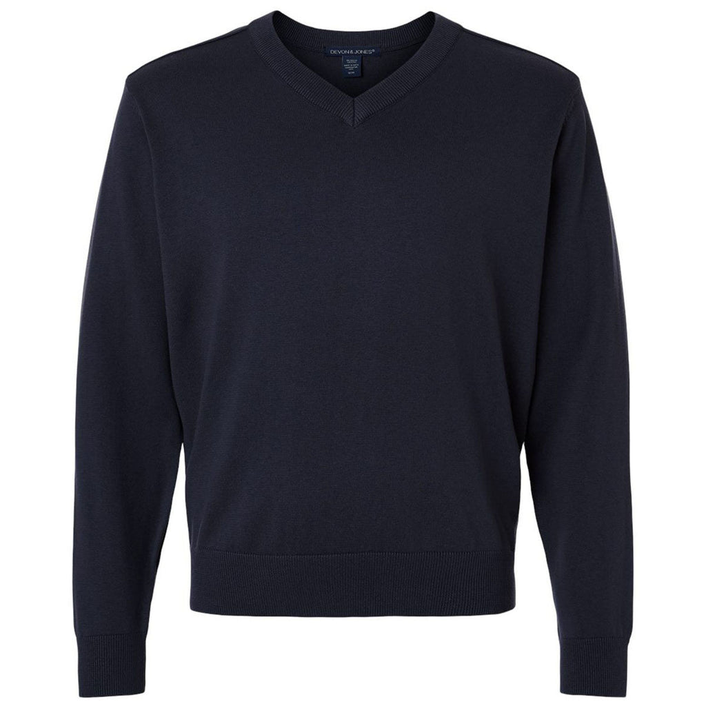 The Devon & Jones Men's Navy New Classics V-Neck Sweater brings corporate-friendly sophistication with a fine-gauge knit that layers smoothly over shirts. Its soft fabric provides reliable comfort, and the classic neckline delivers a refined look for professional environments. This sweater appeals to anyone seeking elevated style and to companies wanting a timeless option for unified attire.Corresponding Women's Style: Devon & Jones Women's Navy New Classics V-Neck Sweater
