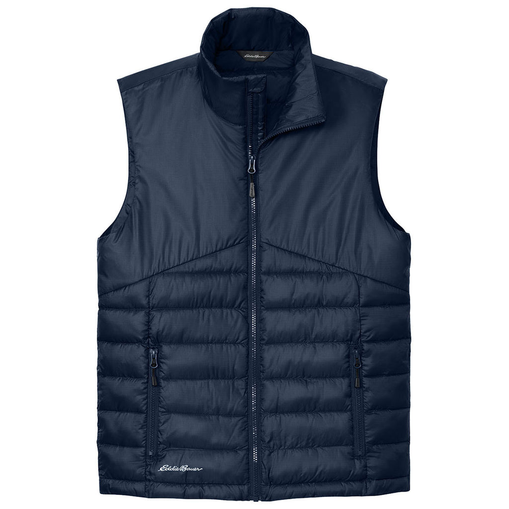 Add your custom logo to the Eddie Bauer Men's River Blue Navy Quilted Vest for a performance layer that is ready for all your outdoor adventures. Whether mountain climbing, skiing, or just enjoying cooler weather, this vest can be worn as an outer or middle layer with ease. Water repellant, quilted, and not bulky, this is a must-have. Place an order today.This product can only ship within the United States, Puerto Rico, Canada, and Mexico.