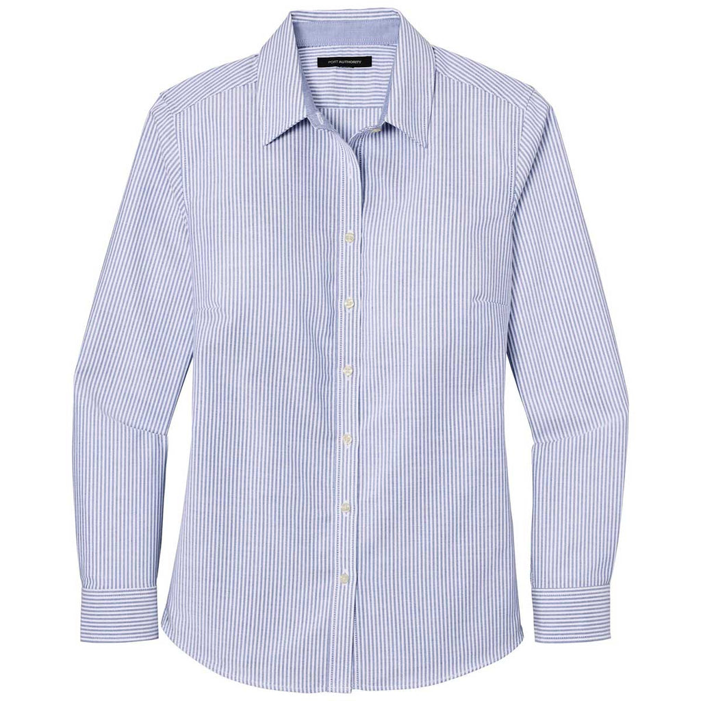 Port Authority Women's Oxford Blue/White SuperPro Oxford Stripe Shirt
