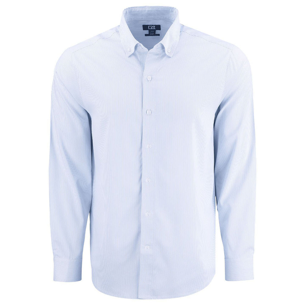 Cutter & Buck Men's Pale Blue/White Skyline Epic Confidence Recycled Pinstripe Long Sleeve Dress Shirt