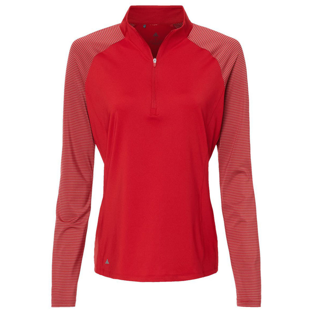 Adidas Women's Team Power Red Stripe Block Quarter-Zip Pullover