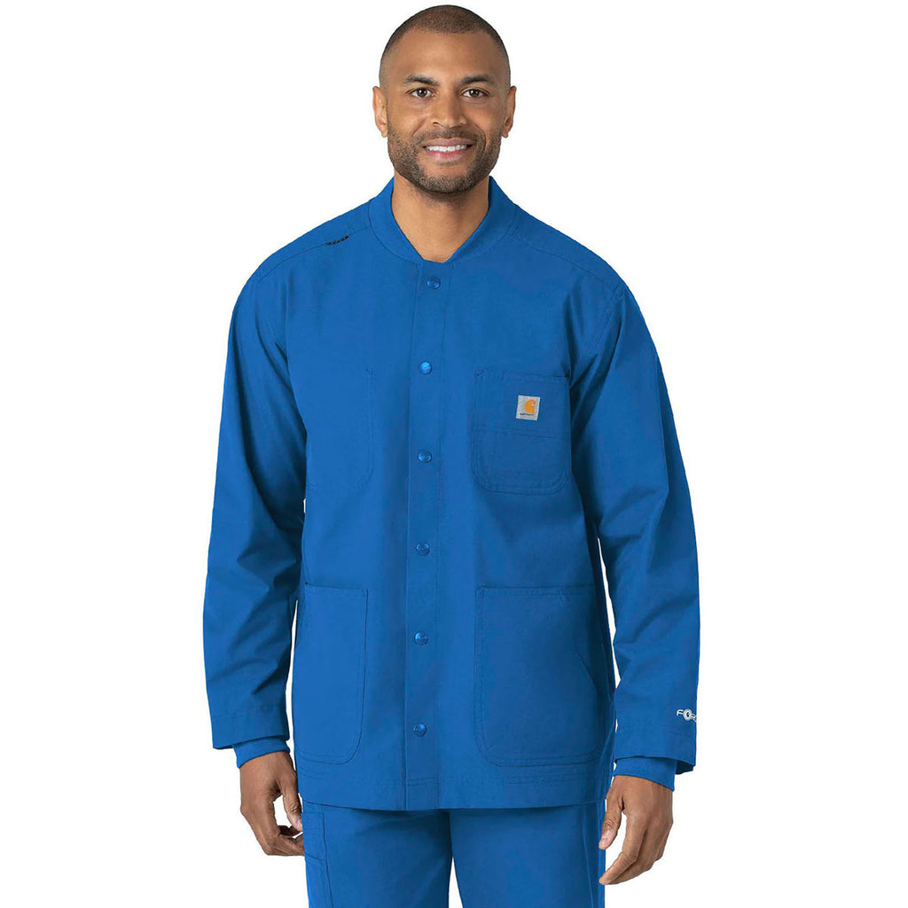 Choose a corporate logo for the Carhartt Unisex Royal Modern Fit FastDry Chore Coat to protect yourself and your clothes as you work your hardest. This quick-drying, sweat-wicking material is perfect for orderlies, janitorial staff, or even servers and busboys with large pockets and a durable yet lightweight design.Highlights