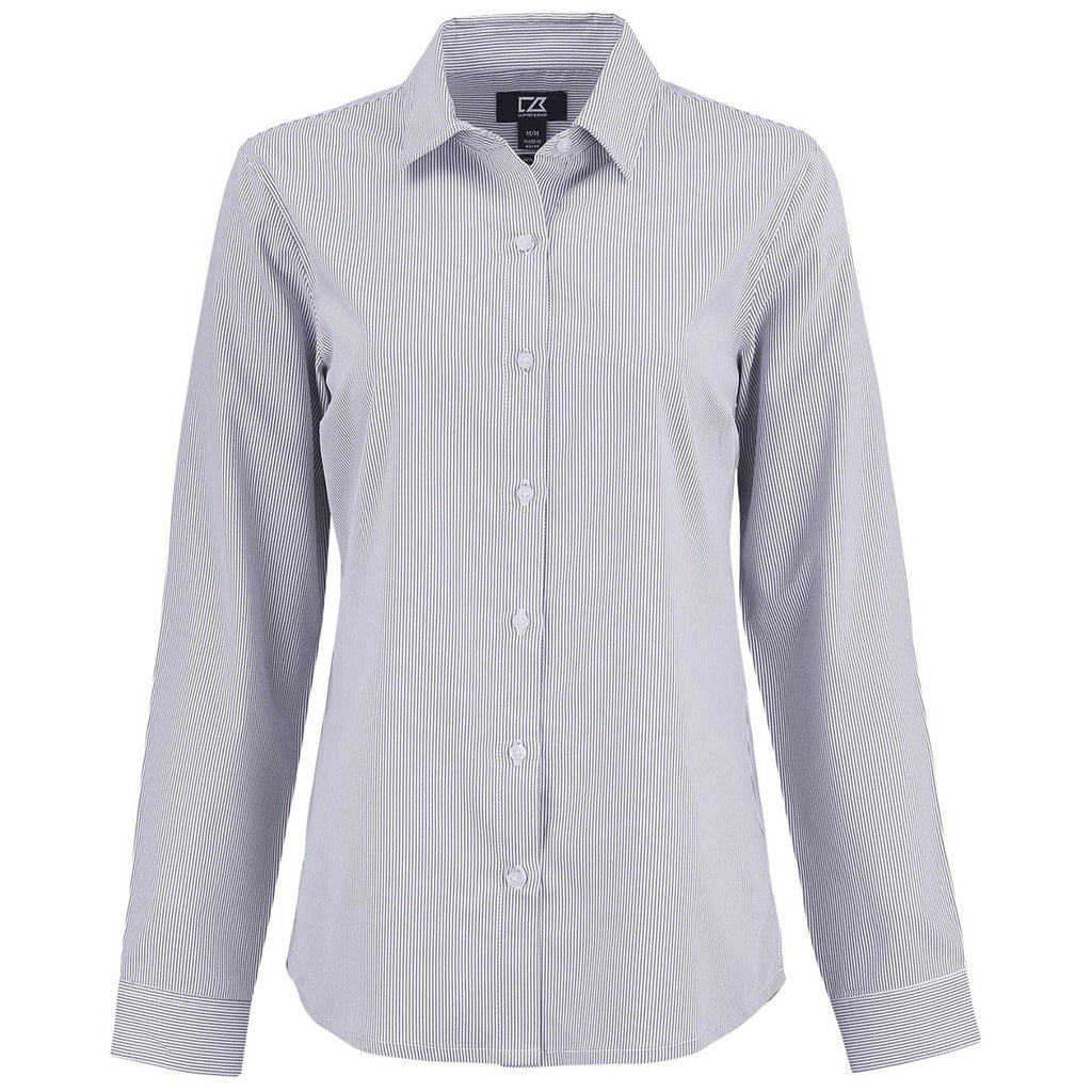 Cutter & Buck Women's Elemental Grey/White Skyline Epic Confidence Recycled Pinstripe Long Sleeve Dress Shirt