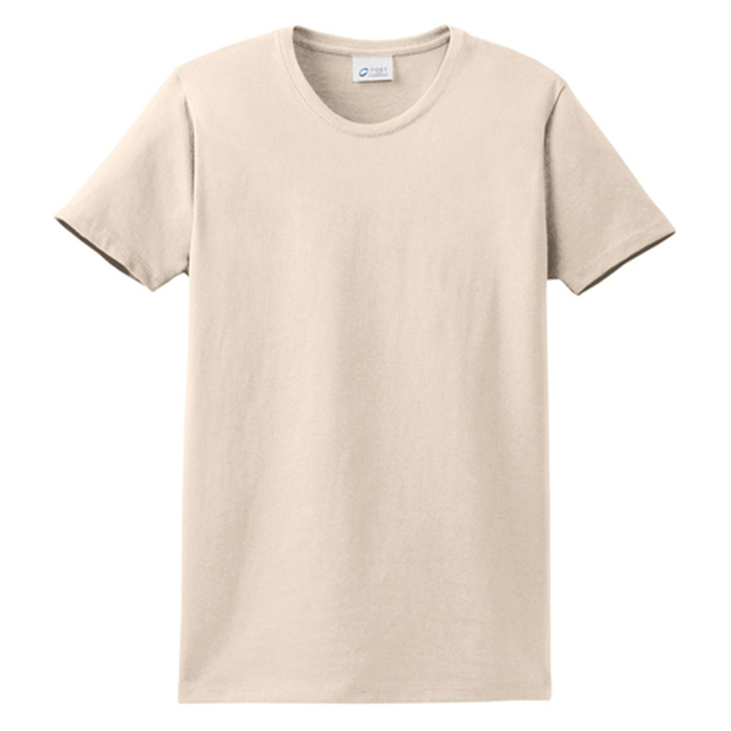 A perennial favorite, this Port & Company Women's Natural Essential Tee is crafted from lightweight, soft-spun cotton. Declared as "most popular" by groups and teams across America. Features a shorter midriff and sleeves for a more feminine fit. Emblazon this crew neck tee with your company's logo or message to gift it to your clients as a corporate give-away or a summer uniform staple for your employees. Either way, it will help your company or organization stand out and create an impactful brand identity.Highlights