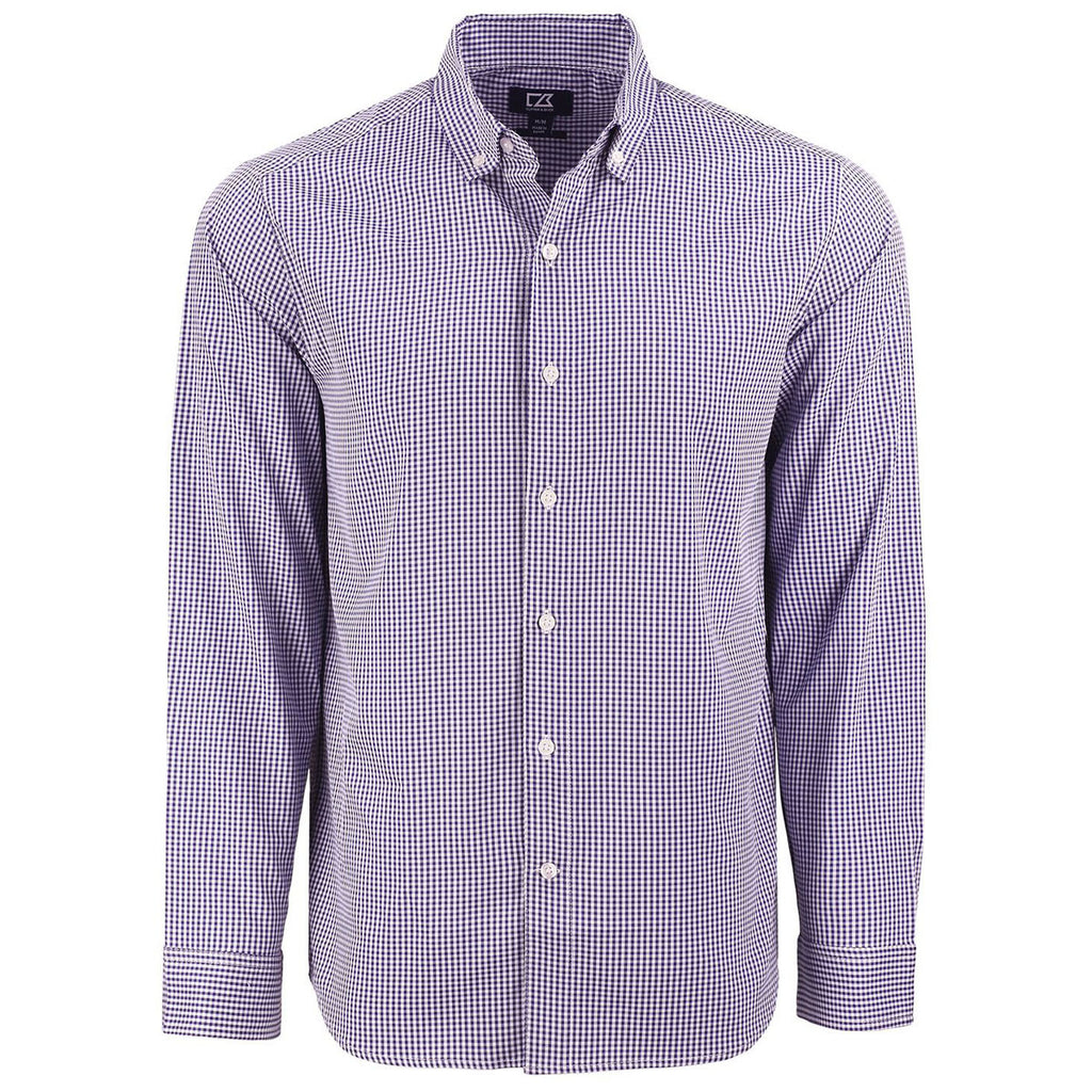 Cutter & Buck Men's College Purple/White Skyline Epic Confidence Recycled Gingham Long Sleeve Dress Shirt