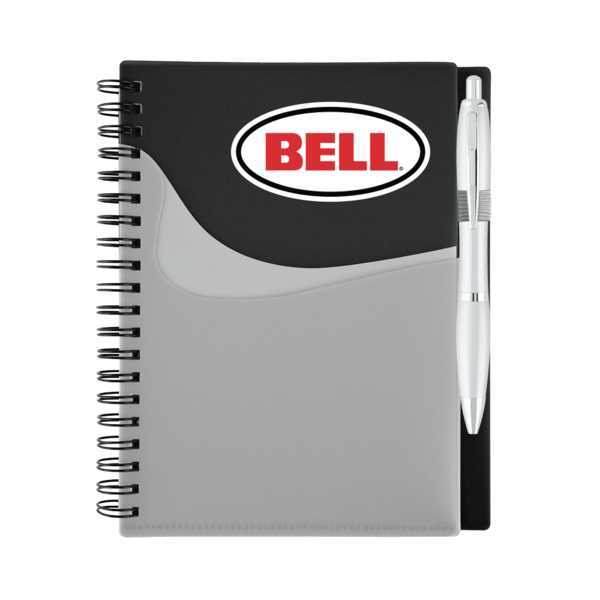 • 70-sheet spiral bound lined notebook with brilliant translucent color covers and matching translucent ballpoint pen (black ink).