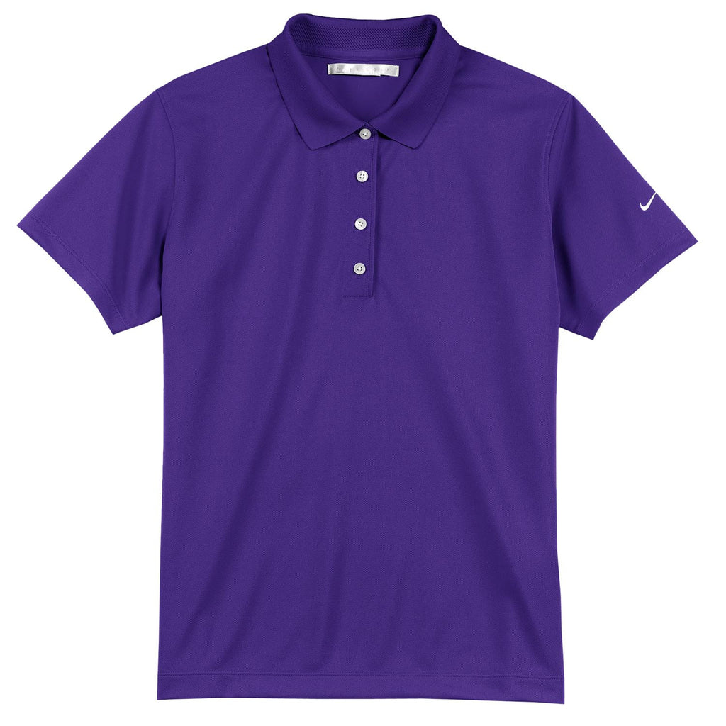 Love the sporty look of the Nike Women's Purple Tech Basic Dri-FIT Short Sleeve Polo? Well, you'll like how it feels and how it fits even more. The Nike Golf Women's Purple Tech Basic Dri-FIT Polo features 100% moisture-wicking polyester fabric, a knit collar, a 4-button placket, open-hem sleeves and pearlized buttons. To finish off the look, the classic Nike Golf Swoosh logo is embroidered on the left sleeve.