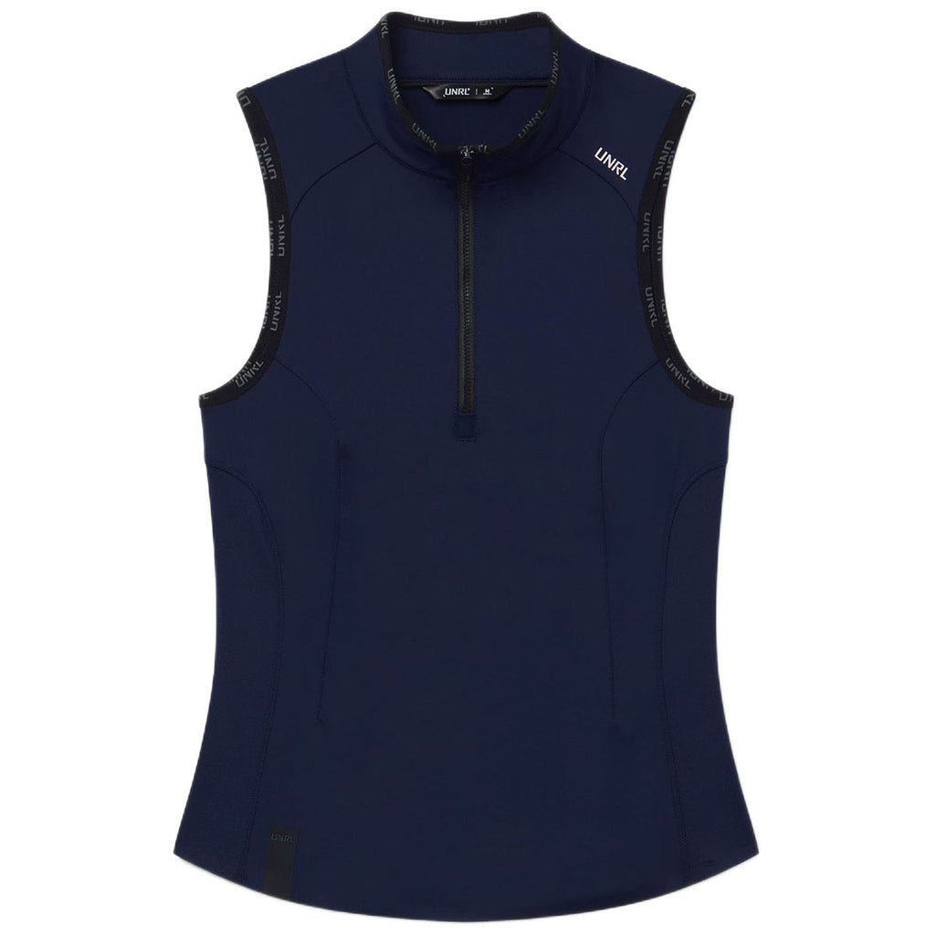 Bring a custom edge to your athletic wardrobe with the UNRL Women's Midnight Navy Performa Sleeveless Polo. Designed for peak performance, it offers a flattering cut and breathable stretch fabric that moves with you. Moisture-wicking and featherlight, it's perfect for the course, the court, or casual Fridays. Stay cool and stylish while making a professional impression.