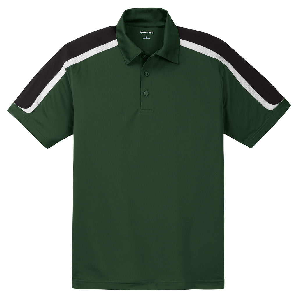 Sport-Tek Men's Forest Green/Black/White Tricolor Shoulder Micropique Sport-Wick Polo