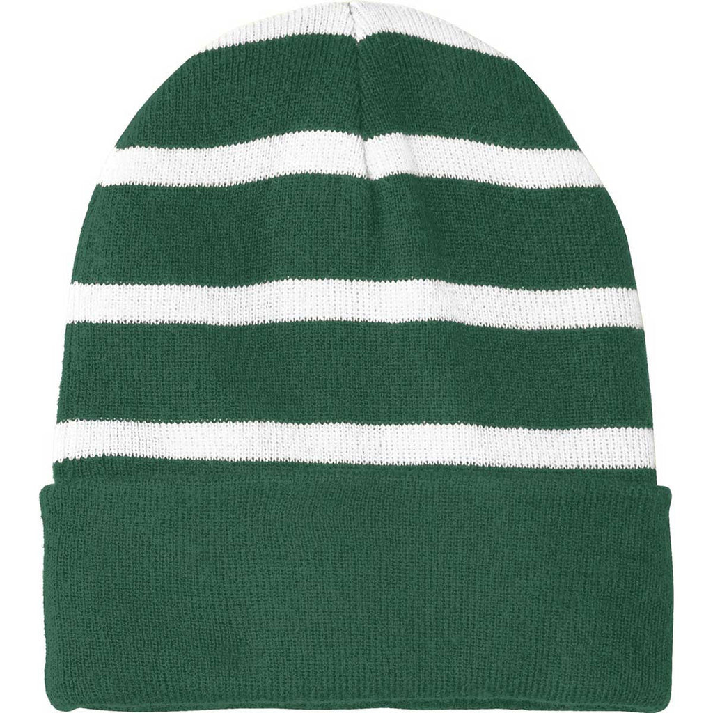 Sport-Tek Forest Green/White Striped Beanie with Solid Band