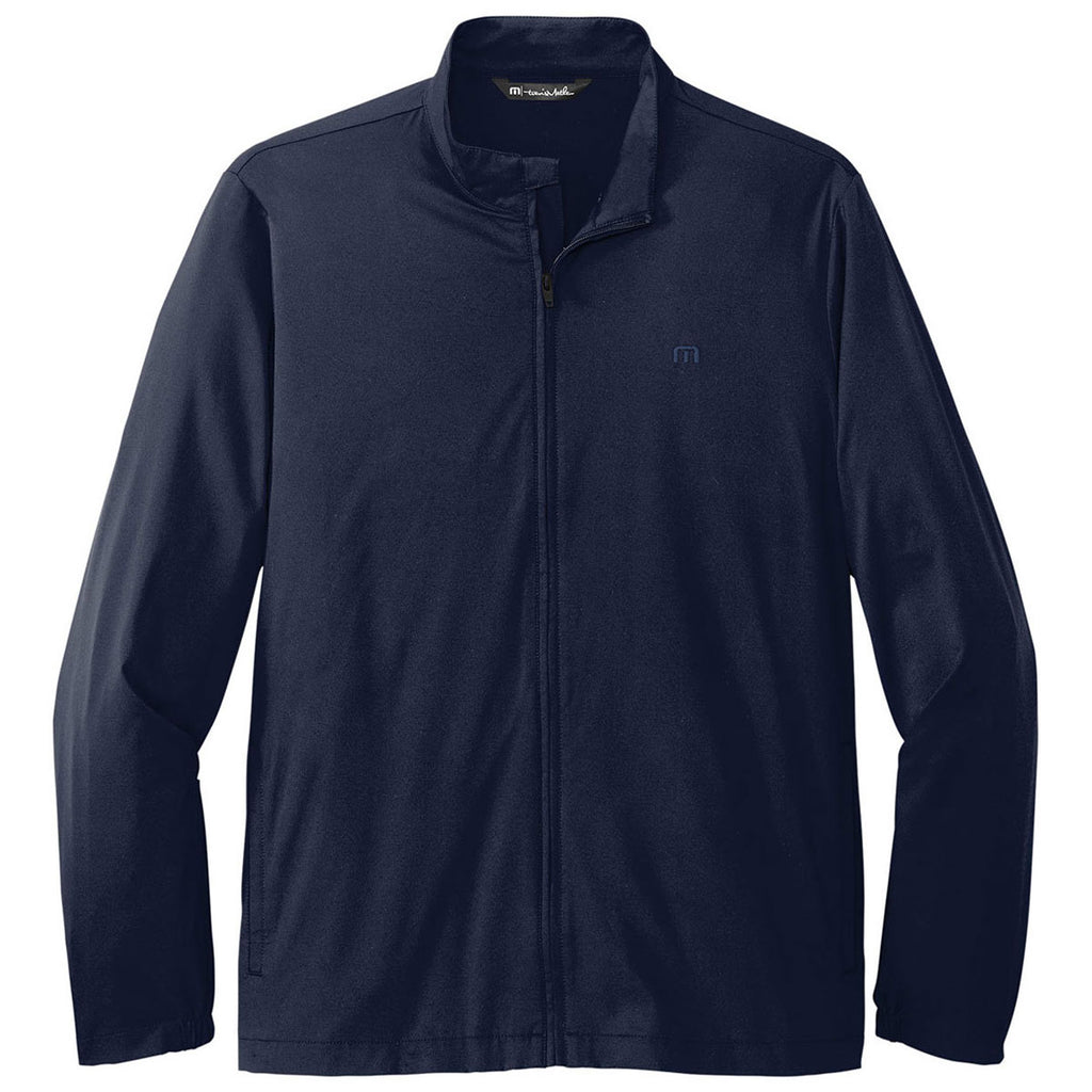 Choose your embroidery for the TravisMathew Men's Vintage Indigo/Black Surfside Full-Zip Jacket for a custom look that easily goes from the golf course to the office. Made of a lightweight nylon, polyester, and spandex blend this jacket is made for comfort and convenience. Created with 4-way stretch for the ultimate in comfort with open hand pockets and cuffs, this jacket can serve as part of employee apparel with a company logo or as a gift for lucky receivers. Easy to layer with a full zip front with reverse coil zipper, this is a must have for everyone from the busy exec to the low man in the corporation.