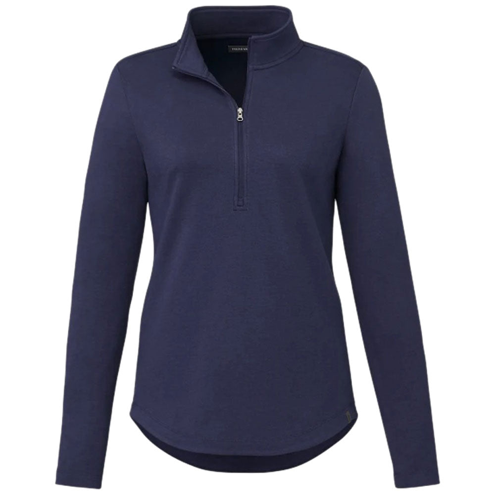 Up your style game with a custom Elevate Women's Vintage Navy Rigi Eco Knit Quarter Zip that offers a shirt-tail hem and tapered waist to create a flattering fit. Add a corporate logo to the eco-friendly quarter zip to use as a uniform or employee gift. Try a custom logo to enjoy a look that can go anywhere as part of a layered option that will keep you looking and feeling great. Order today.Corresponding Men's Style: Elevate Men's Vintage Navy Rigi Eco Knit Quarter Zip