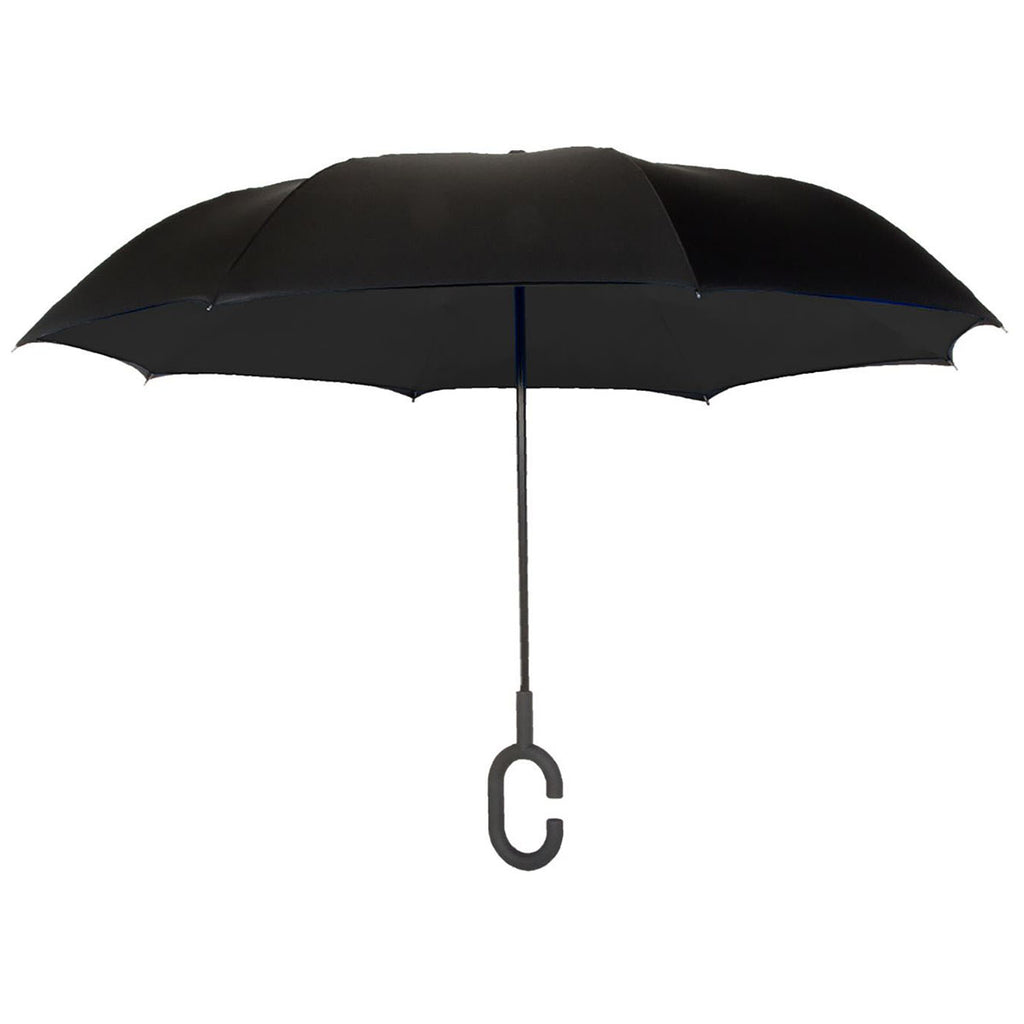 • Manual open and close inverted umbrella with a reverse-closing design creates a cone when closed, keeping water contained