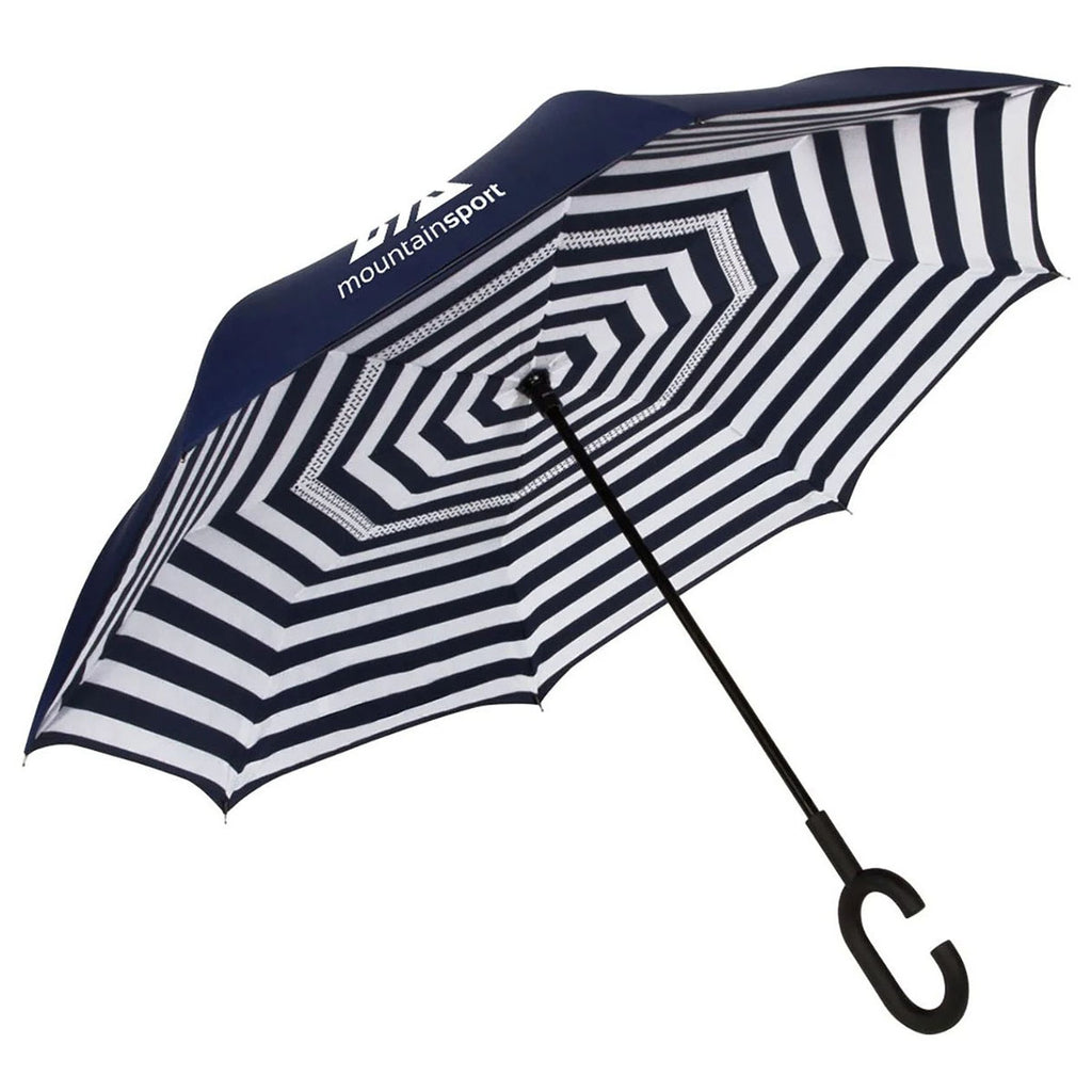 • Manual open and close inverted umbrella with a reverse-closing design creates a cone when closed, keeping water contained