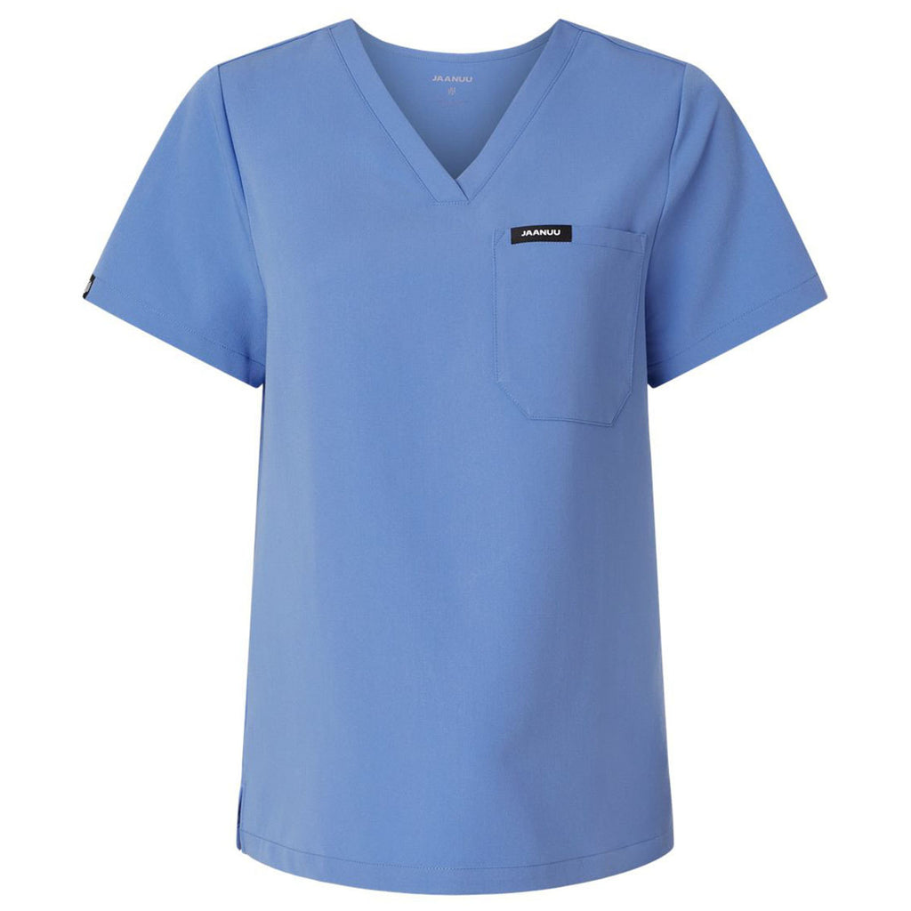 Jaanuu Women's Ceil Blue Rhena Essential 1-Pocket Scrub V-Neck Top with a corporate logo is a simple and classic way to outfit your staff while showcasing your brand. The classic fitting scrub top has a tuckable design for versatility whether you are a nurse, work in a spa, or simply enjoy wearing scrubs.Corresponding Men's Style: Jaanuu Men's Ceil Blue Holmes Everyday 1-Pocket Scrub V-Neck Top